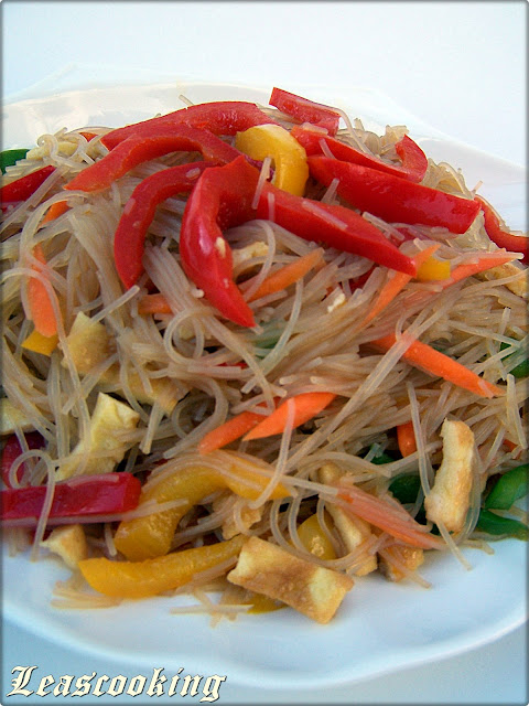6 Bell peppers 3 colors1 Package Maifun Rice sticks2 Carrots5 EggsSoy sauce, Oil I added Print option on your right.